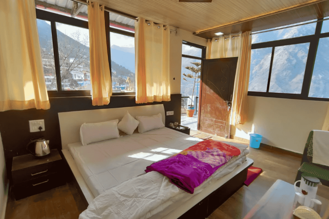 The rooms are neat and cosy, with a balcony and a flat-screen TV. Bathrooms have a shower with clean towels. The homestay is popular among tourists for its friendly host, homely environment, and good service. It is one of the best budget stays in Joshimath.